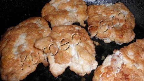 4. Затем каждый биточек обвалять в муке и яйце и обжарить на раскаленном масле до золотистого цвета.