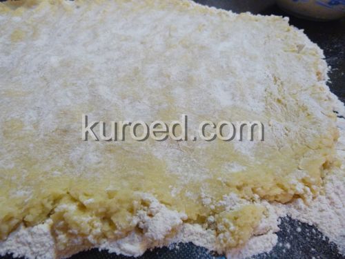 Картофельное "тесто" разложить ровным слоем на посыпанном мукой столе (или на смоченную водой марлю или салфетку).