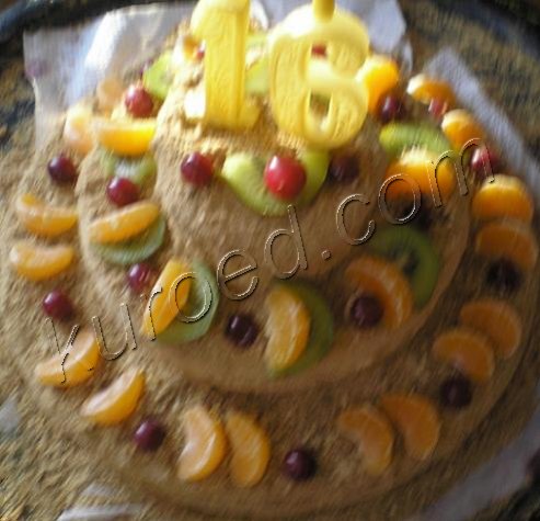 Коржи можно перемазать и сметанным кремом. При дозировке теста: 2 яйца,