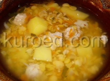 Любимый гороховый суп, на этот раз - с нежными фрикадельками.