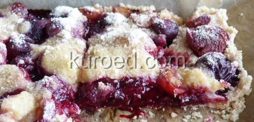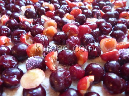 Ленивый вишнево-черешневый пирог с заварным кремом и песочной основой.