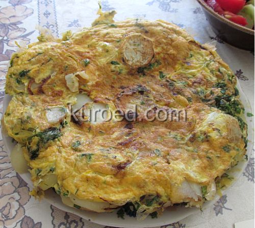 Вкусный и сытный омлет с картофелем и луком по-испански.
