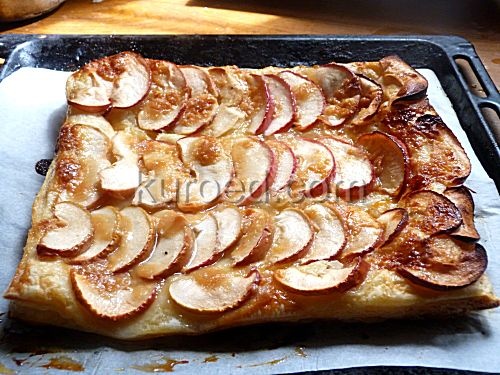 Как и все изделия из готового слоеного теста, вкуснее всего теплым.