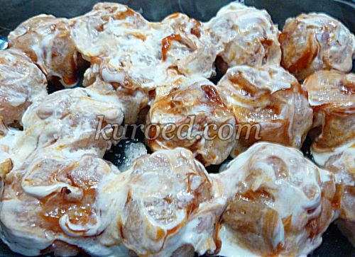 Вкусные куриные тефтели в сливочно-томатном соусе, запеченные в духовке.
