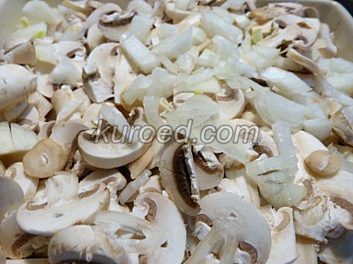 Просто и быстро готовится: так как картошка и курица уже готовы, лимитирующим фактором является время запекания грибов.