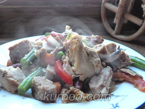 Зимнее рагу из овощей с печеной курицей и грибами